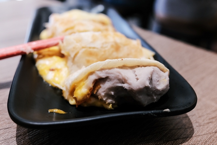 芋泥起司蛋餅厚厚一層,視覺效果滿點