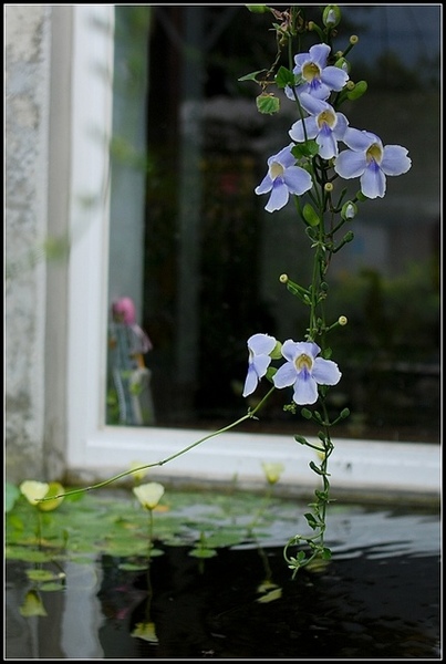 映入眼簾的是這一串美麗的花朵垂吊在池塘上